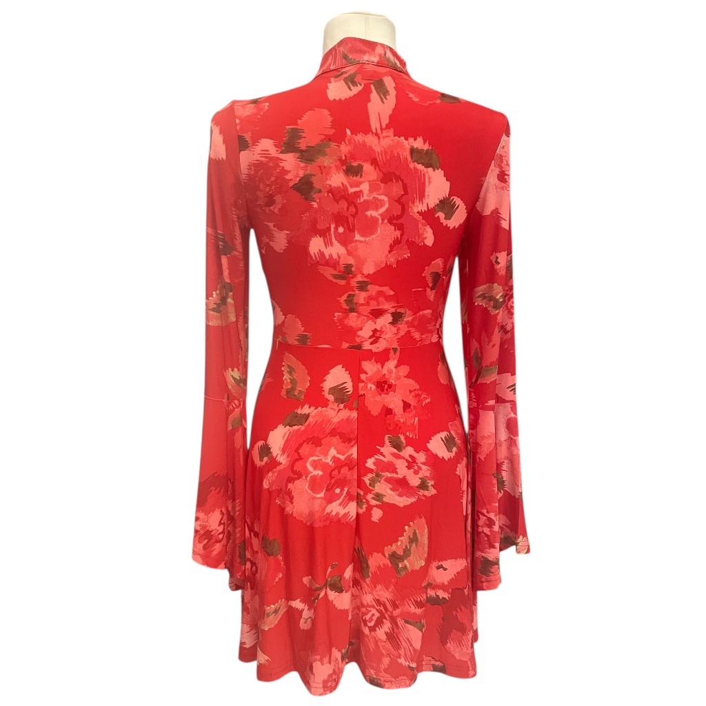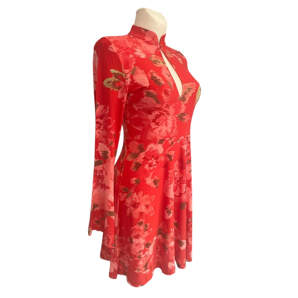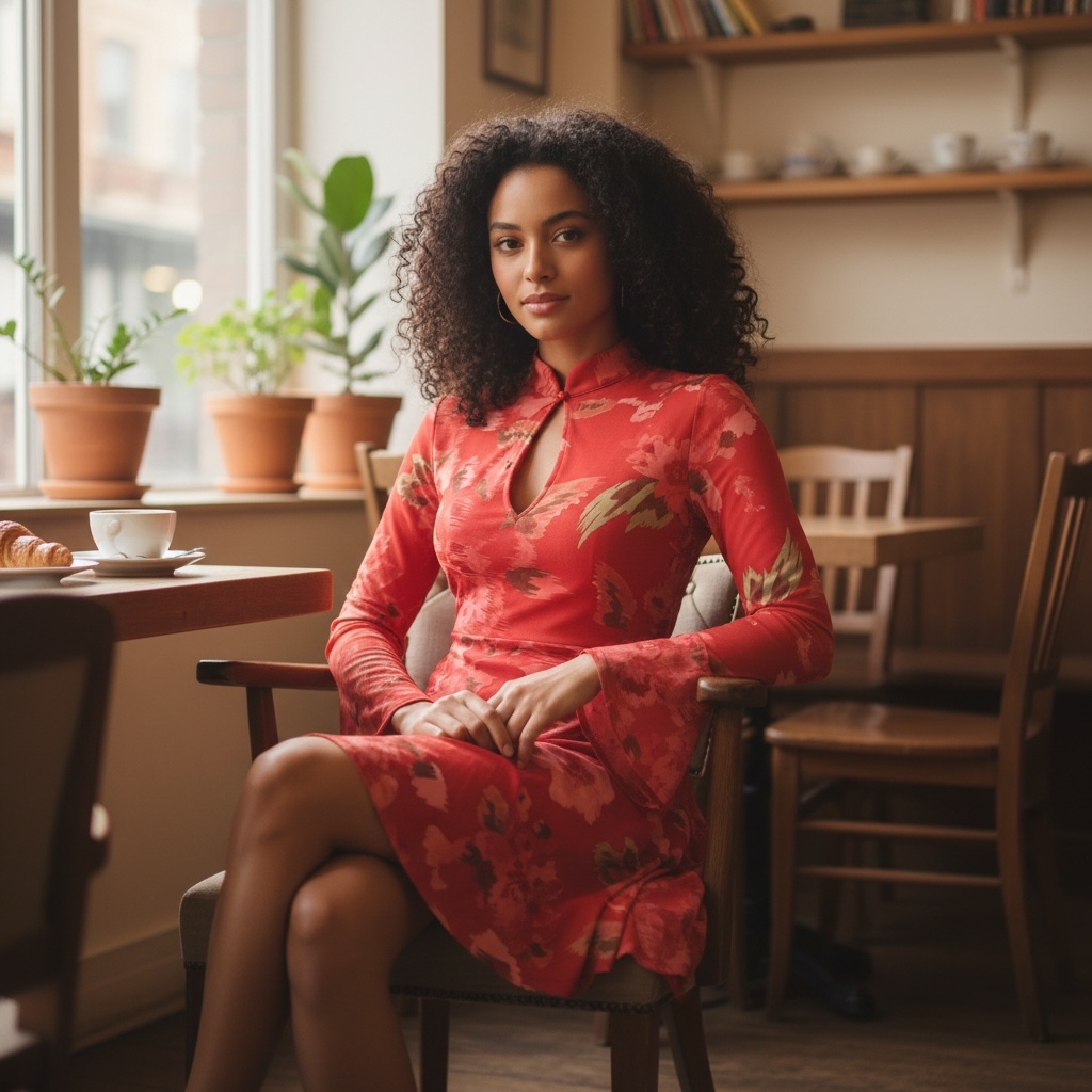 Sukienka „Bloom Elegance” to zmysłowa, kobieca propozycja w intensywnym czerwonym kolorze z malarskim, kwiatowym wzorem. Dopasowana góra pięknie podkreśla sylwetkę, a dekoracyjne rozcięcie przy dekolcie dodaje subtelnej elegancji. Rozkloszowany dół nadaje lekkości i ruchu, natomiast długie, delikatnie rozszerzane rękawy wprowadzają romantyczny charakter. Idealna na randkę, przyjęcie czy wyjątkową okazję – ta sukienka przyciąga spojrzenia i sprawia, że każda kobieta czuje się wyjątkowo.