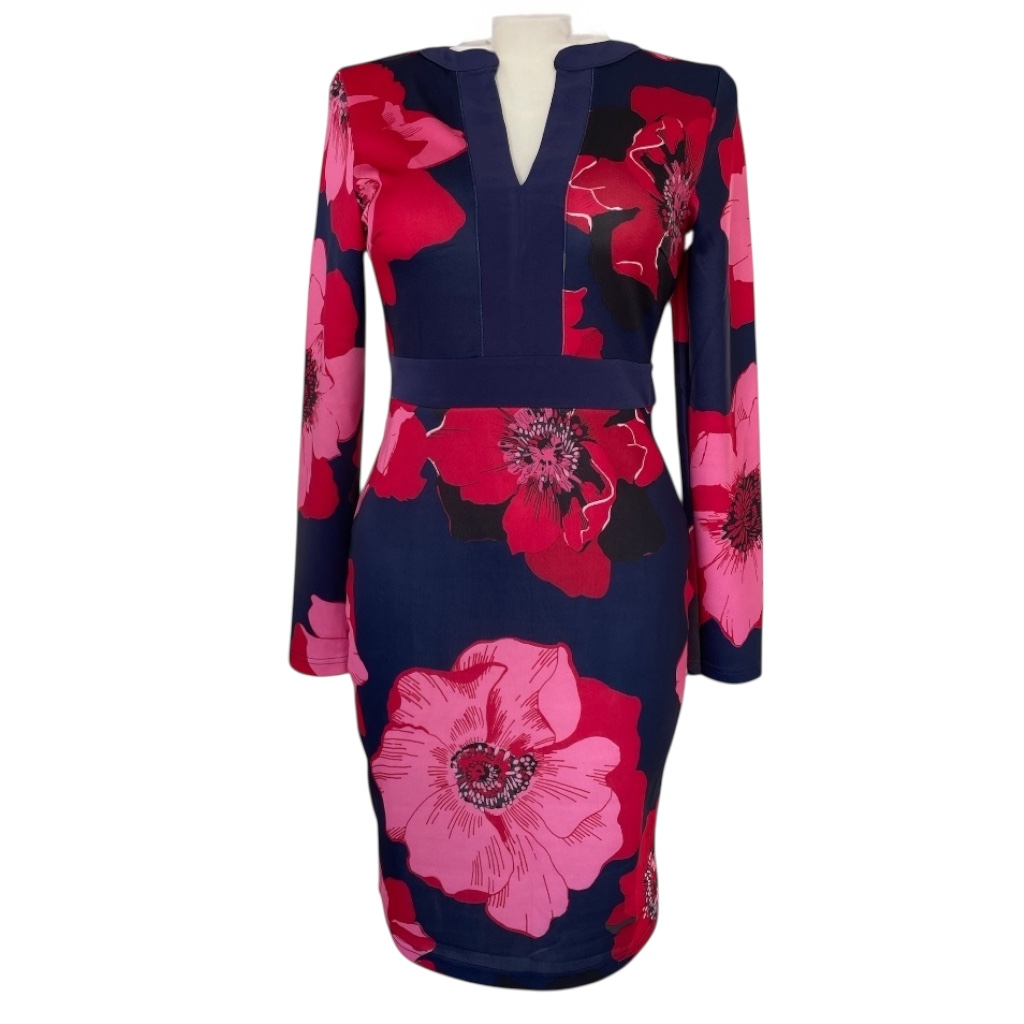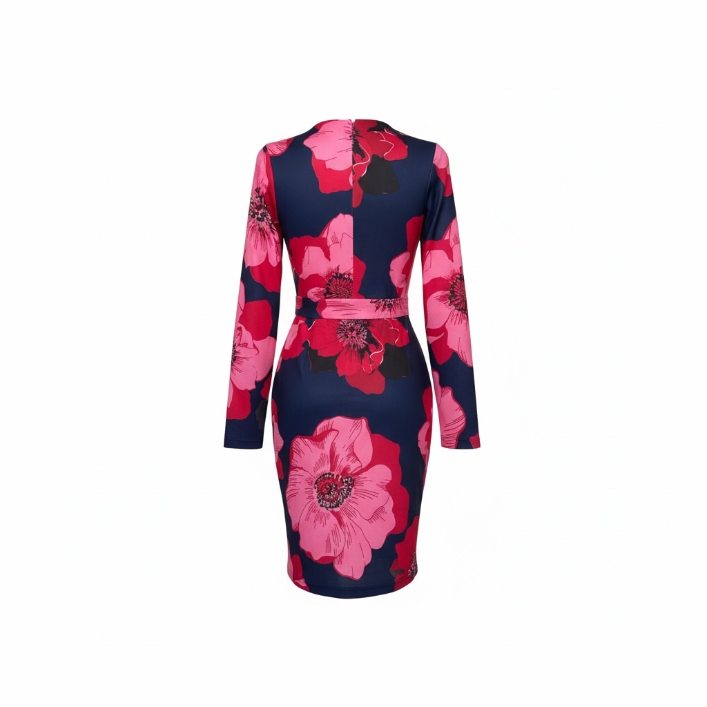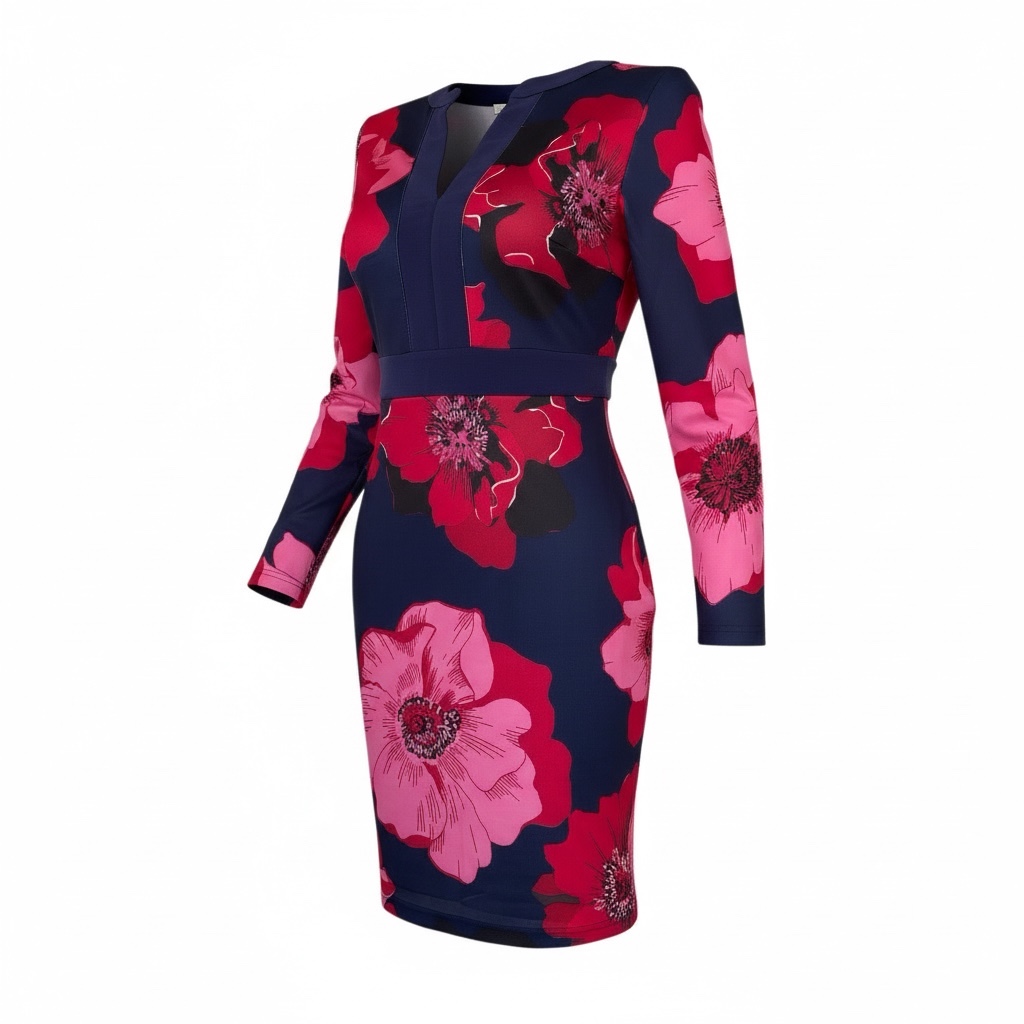 Elegancka, dopasowana sukienka ołówkowa wykonana z elastycznej, miękkiej wiskozy. Model zaprojektowany z myślą o sezonie jesienno-zimowym, łączy styl, wygodę i wyrazisty charakter. Fason dopasowany podkreśla kobiece kształty, a długi rękaw sprawia, że sukienka doskonale sprawdzi się w chłodniejsze dni. Materiał jest przyjemny dla skóry, elastyczny i nie krępuje ruchów, dzięki czemu sukienka jest nie tylko efektowna, ale też bardzo wygodna. Całość wyróżnia się pięknym, dekoracyjnym wzorem oraz intensywną, głęboką kolorystyką, która nadaje stylizacji elegancji i luksusowego wyglądu.