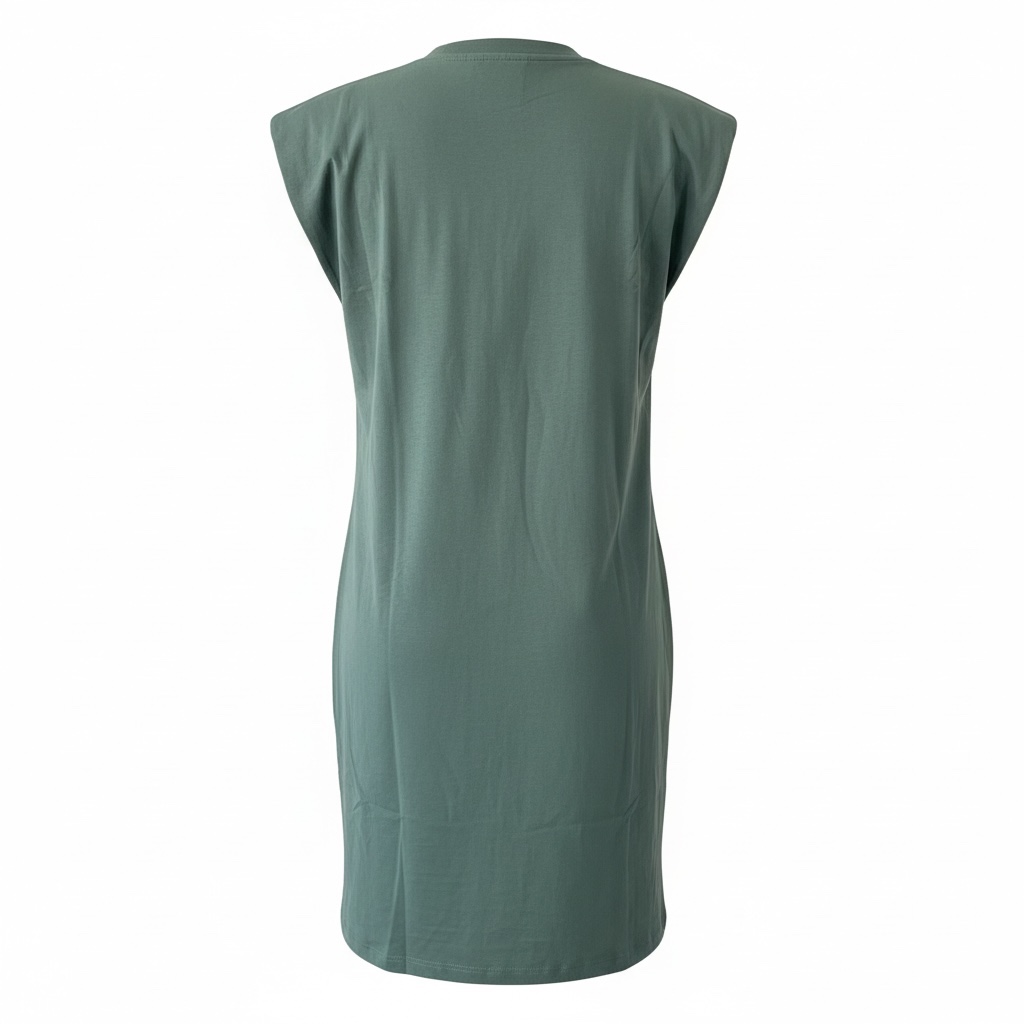 Zielona, klasyczna sukienka o prostym kroju, bez rękawów, z delikatnymi pół-poduszeczkami na ramionach, które subtelnie podkreślają sylwetkę i dodają elegancji. Wykonana z wysokiej jakości bawełny, miękka, przyjemna w dotyku i niezwykle wygodna w noszeniu. Długość do kolan sprawia, że sukienka jest uniwersalna i komfortowa nawet w ciepłe dni. Model daje możliwość stylizacji z ozdobnym paskiem, który podkreśli talię i nada całości indywidualnego charakteru. Idealna propozycja na lato – świetnie sprawdzi się zarówno na co dzień, jak i do pracy. Minimalistyczna forma pozwala łatwo dopasować ją do różnych dodatków i okazji.