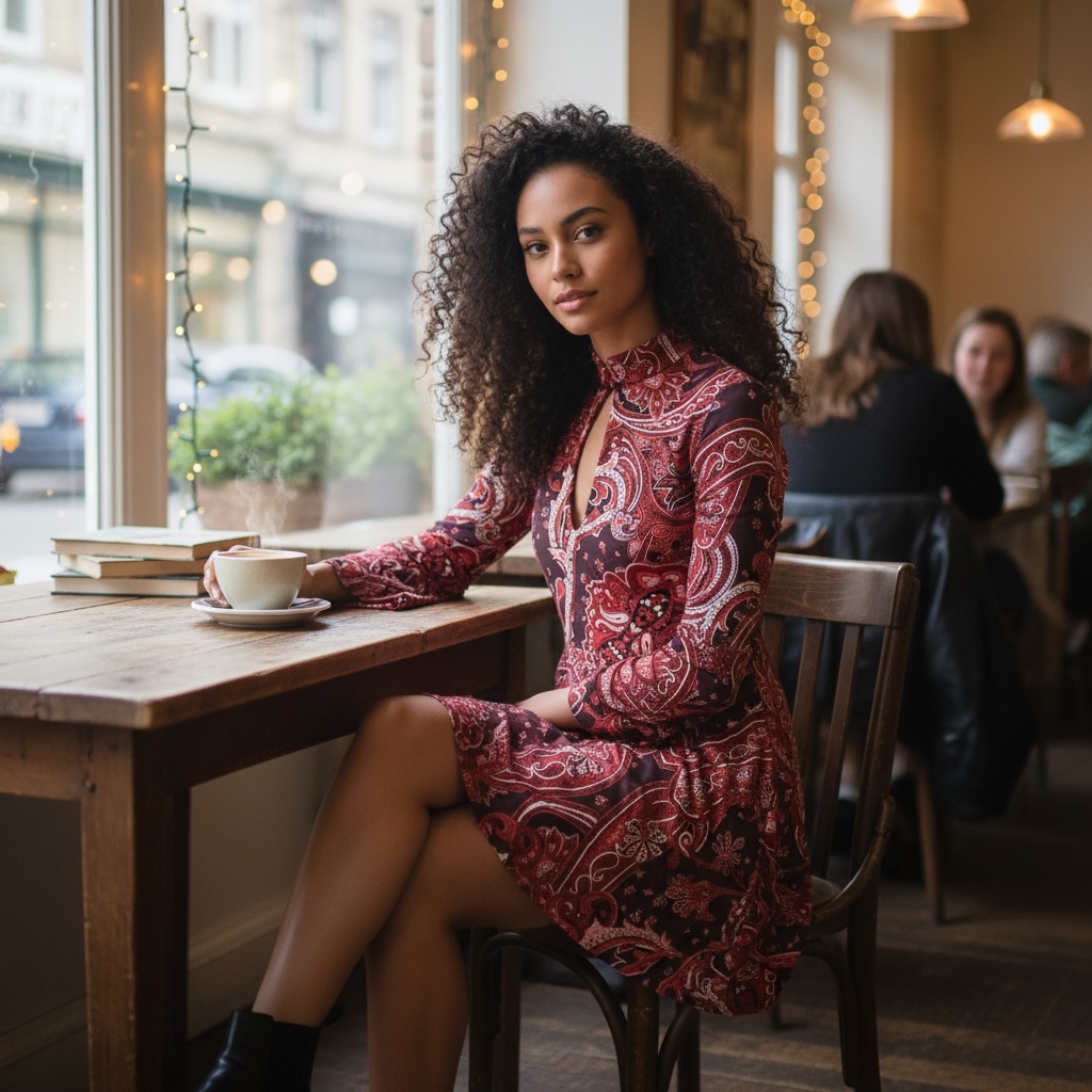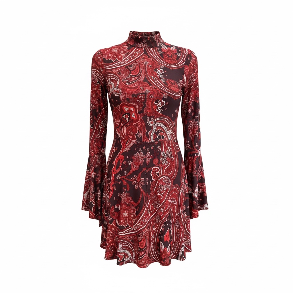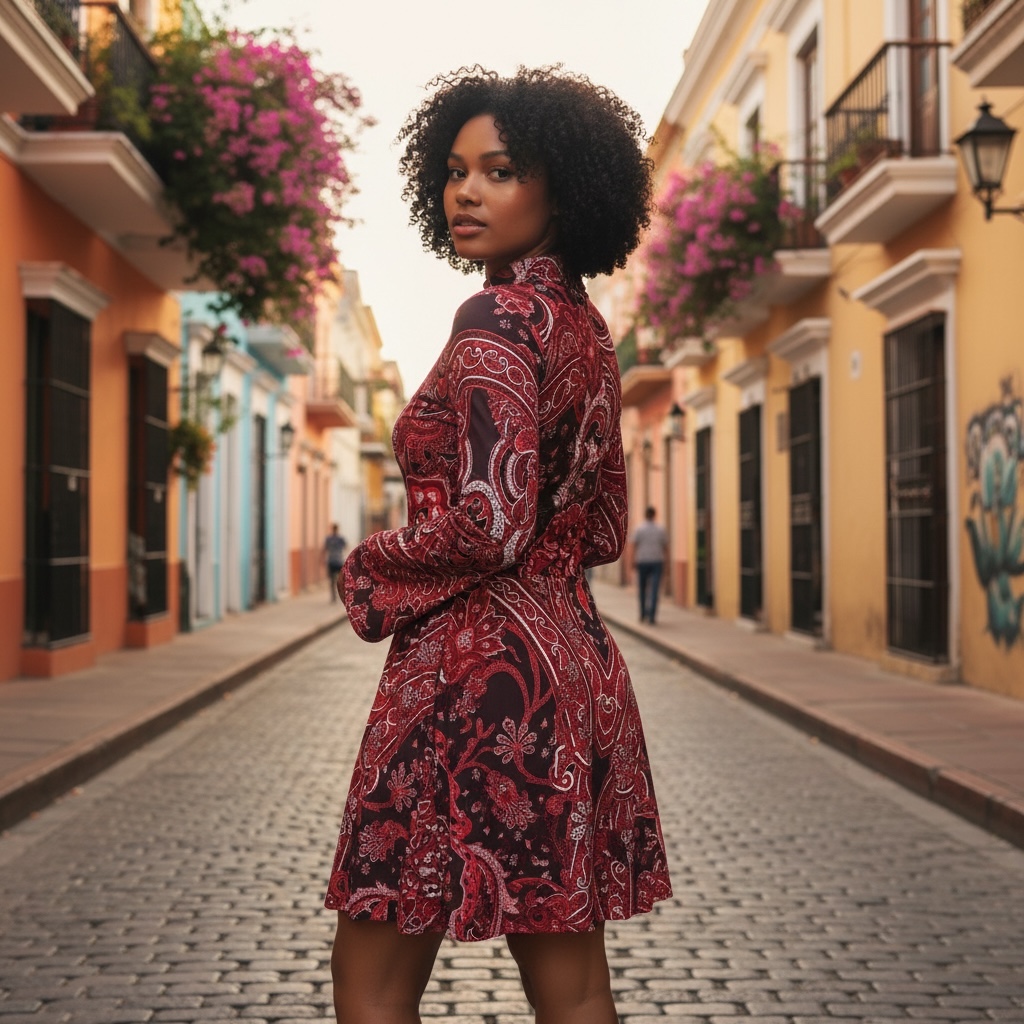 Odkryj kobiecość w rytmie hiszpańskich ulic z sukienką Red Havana Breeze – idealnym wyborem na lato, randkę, wakacje i każdy dzień, w którym chcesz poczuć się wyjątkowo. Ta zwiewna sukienka o długości przed kolano zachwyca bogatym czerwonym wzorem, który nadaje stylu boho i subtelnej elegancji. Delikatny rozkloszowany dół pięknie układa się przy każdym ruchu, a taliowany krój podkreśla sylwetkę. Elegancki dekolt z lekko wyciętym detalem dodaje zmysłowości, a długie rękawy zakończone mankietem nadają całości szyku. Idealne połączenie kobiecości i lekkości.