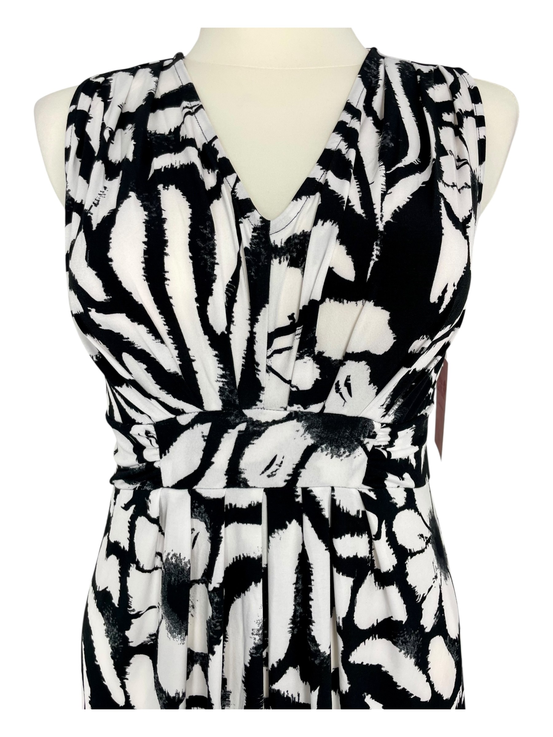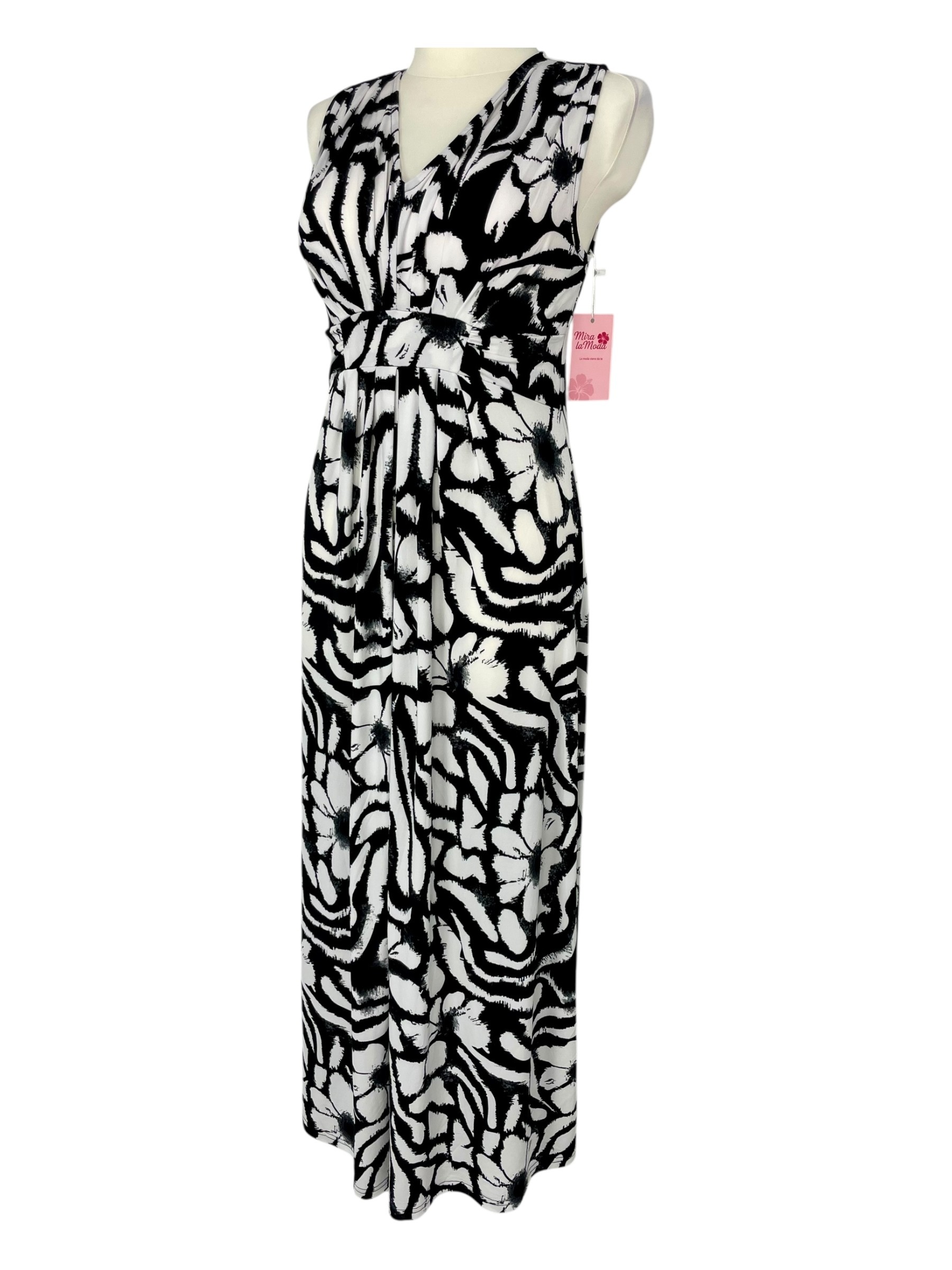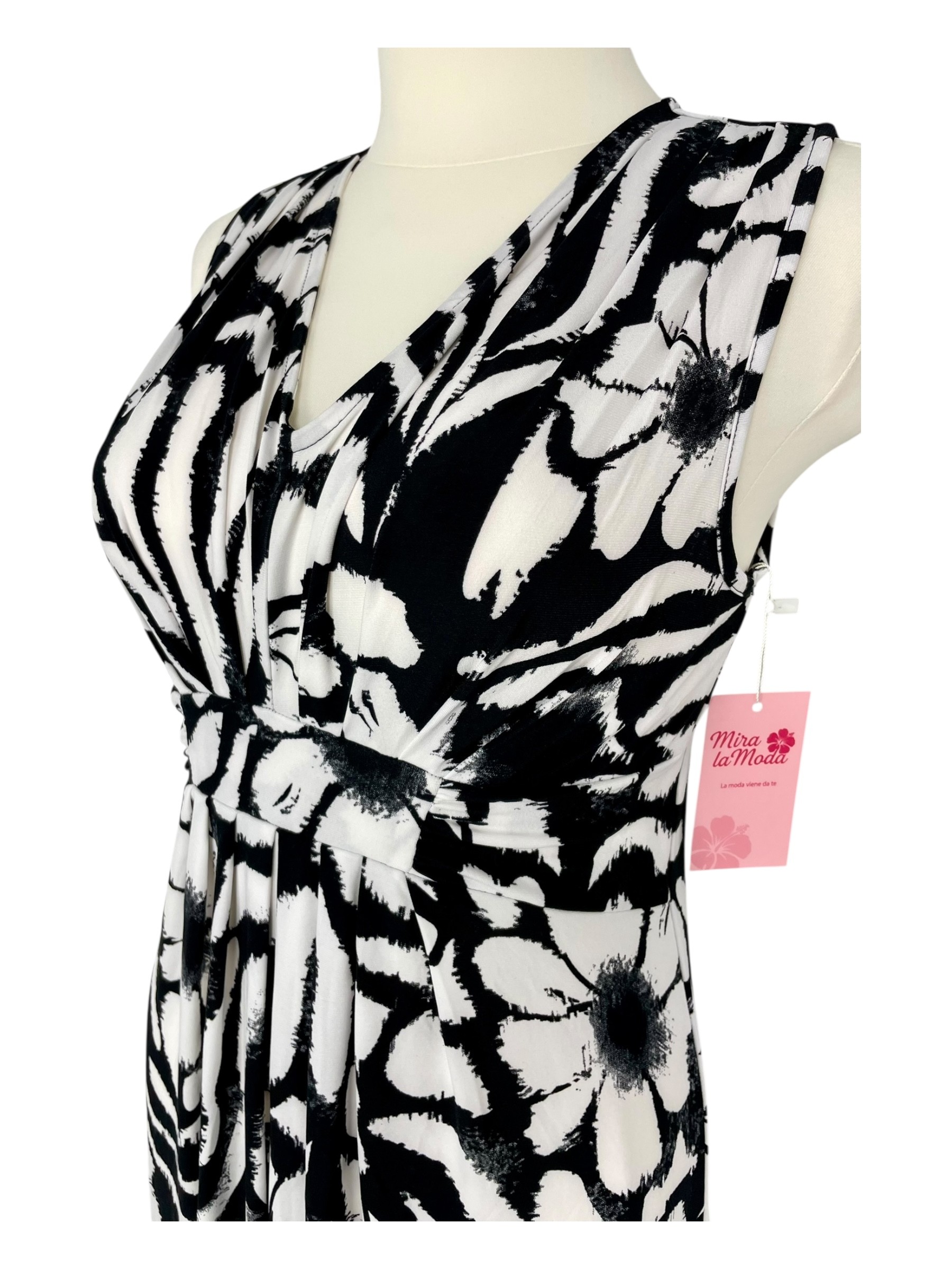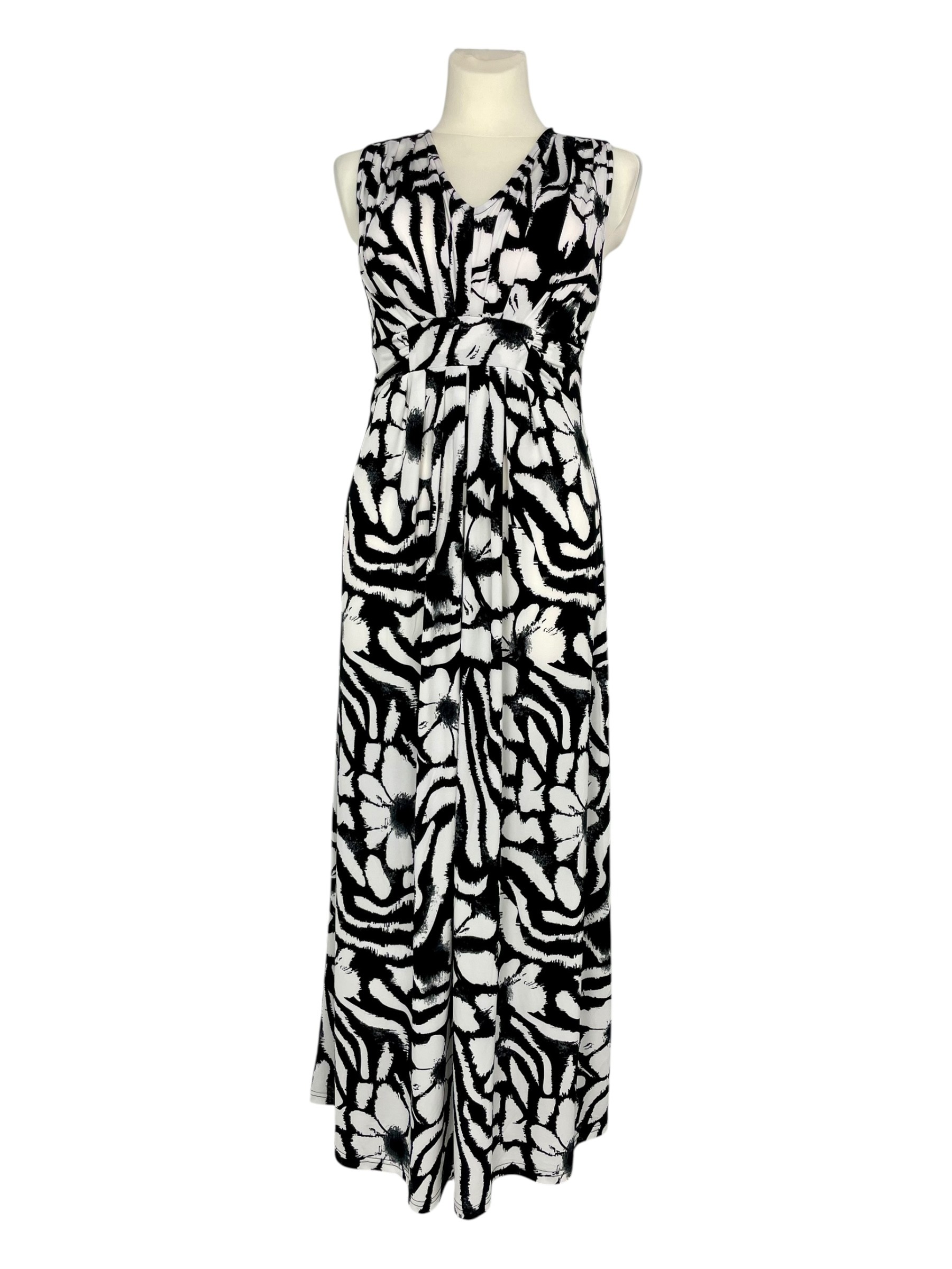 Stylowa i niezwykle wygodna sukienka stworzona z myślą o letnich dniach! Uszyta z elastycznego, miękkiego poliestru, który idealnie dopasowuje się do sylwetki, zapewniając komfort i swobodę przez cały dzień. Model z podwyższonym stanem pięknie wydłuża nogi i podkreśla talię, a dekolt w serek delikatnie eksponuje szyję i dodaje kobiecego uroku. Czarno-białe wzory nadają jej elegancji i ponadczasowego charakteru – sprawdzi się zarówno na co dzień, jak i na wakacyjne wyjścia.