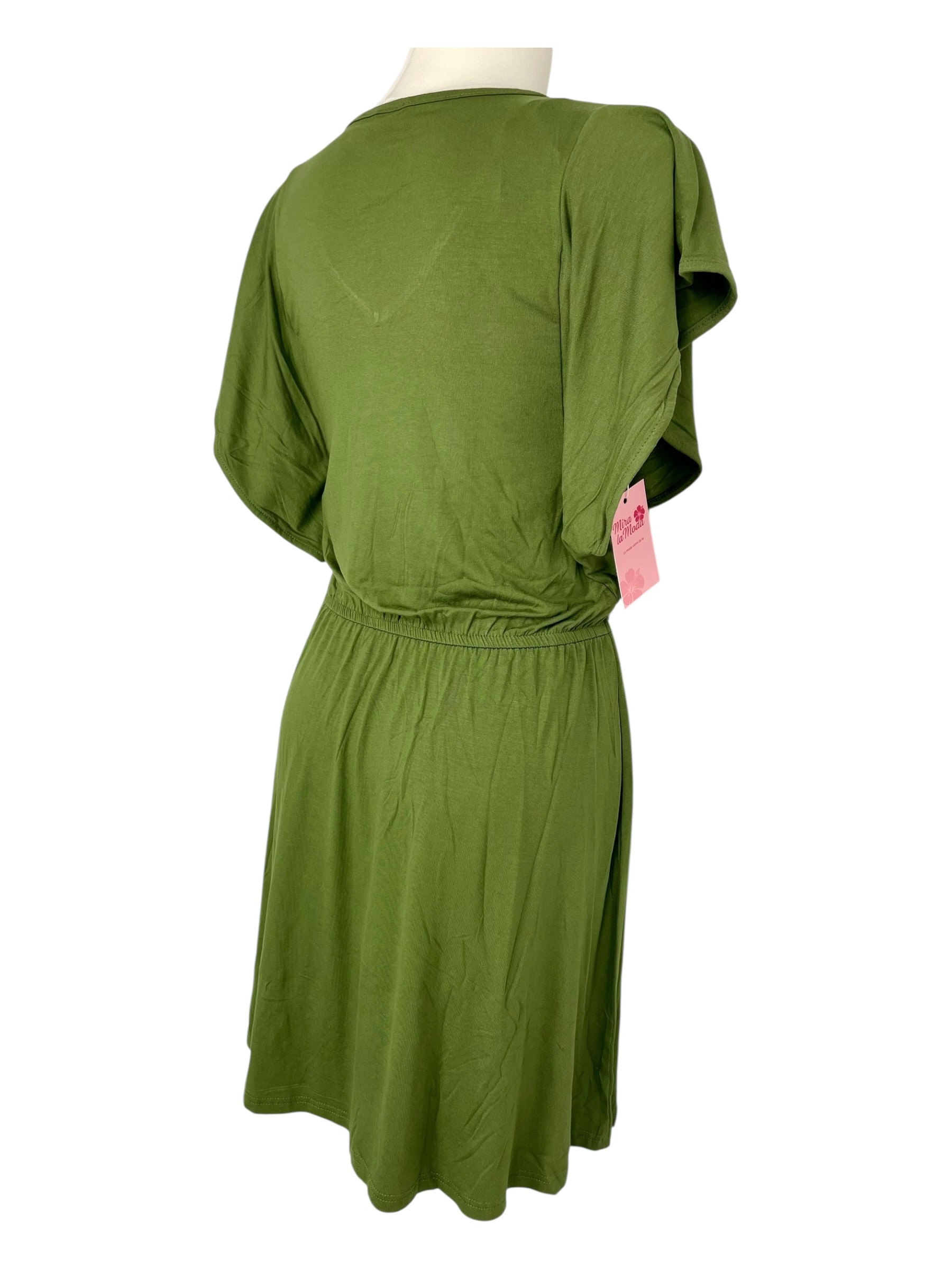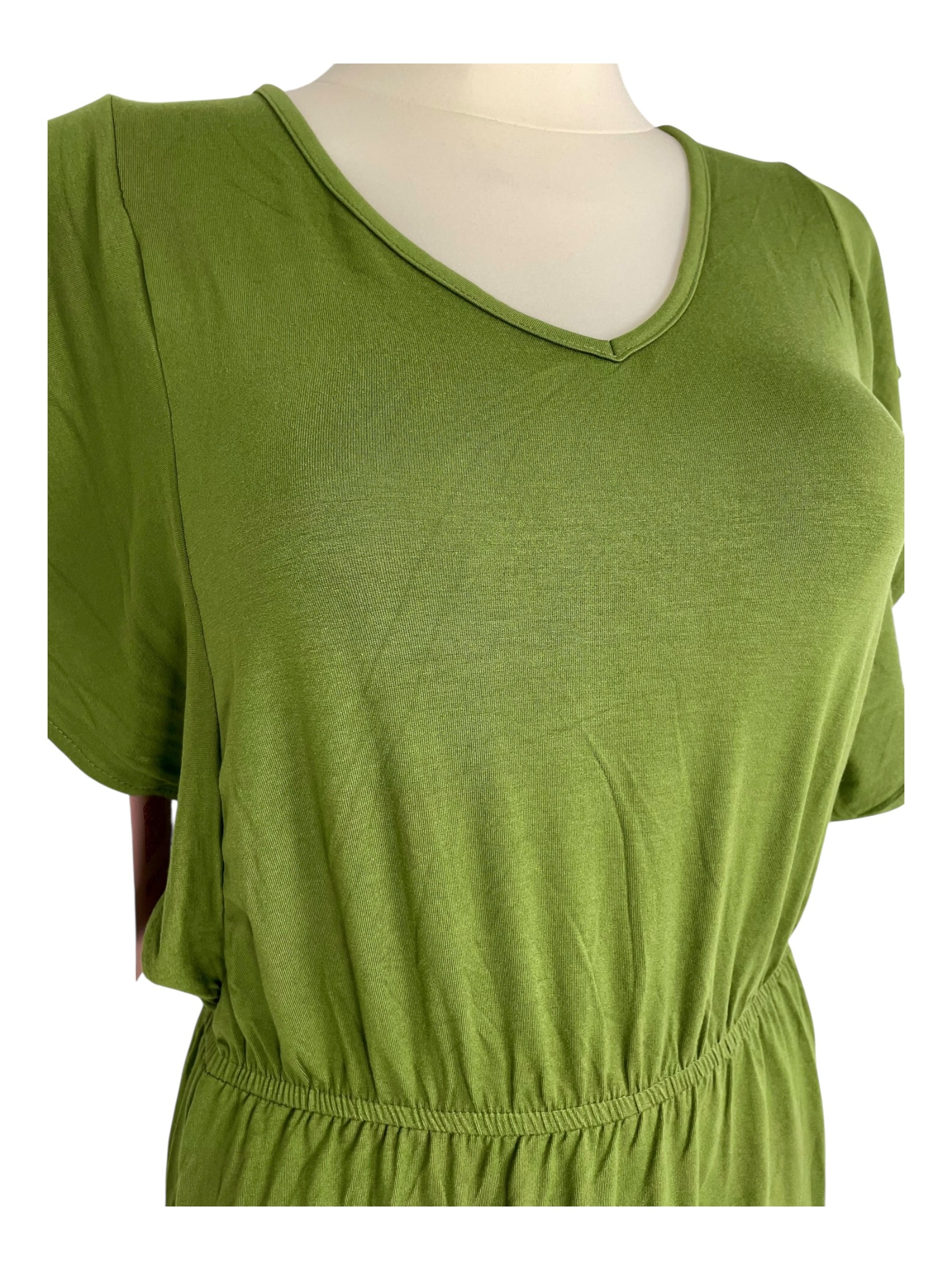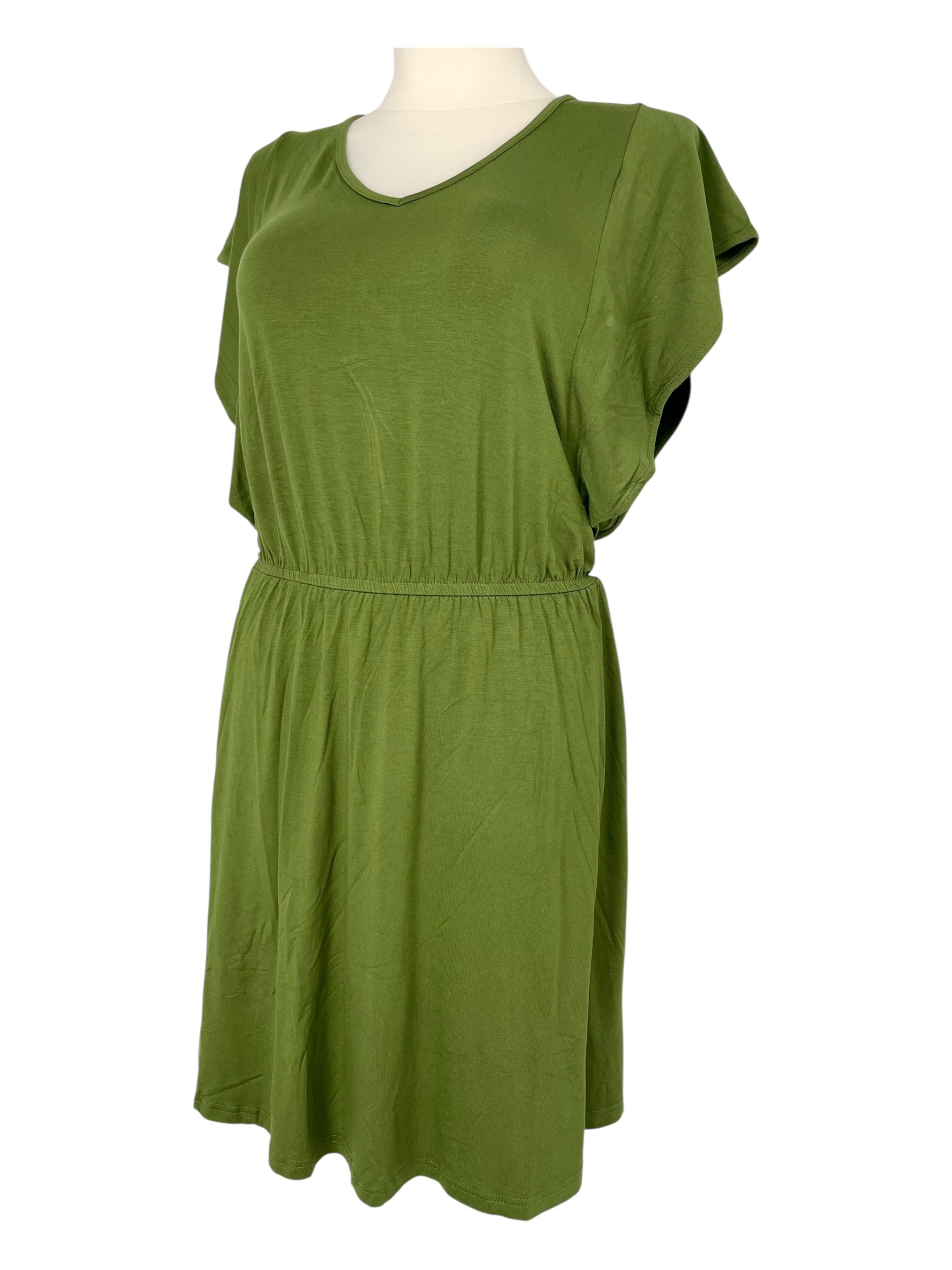 Ta wyjątkowa sukienka w kolorze butelkowej zieleni to połączenie wygody i kobiecego uroku. Wykonana z miękkiej, oddychającej wiskozy z dodatkiem elastanu, zapewnia komfort noszenia przez cały dzień. Długość do kolan. W tali elastyczna gumka, która pięknie podkreśla sylwetkę. Rękawy, zwiewne motylki dodające lekkości. Dekolt w serek. Idealna na lato – zarówno na co dzień, jak i na specjalne okazje
